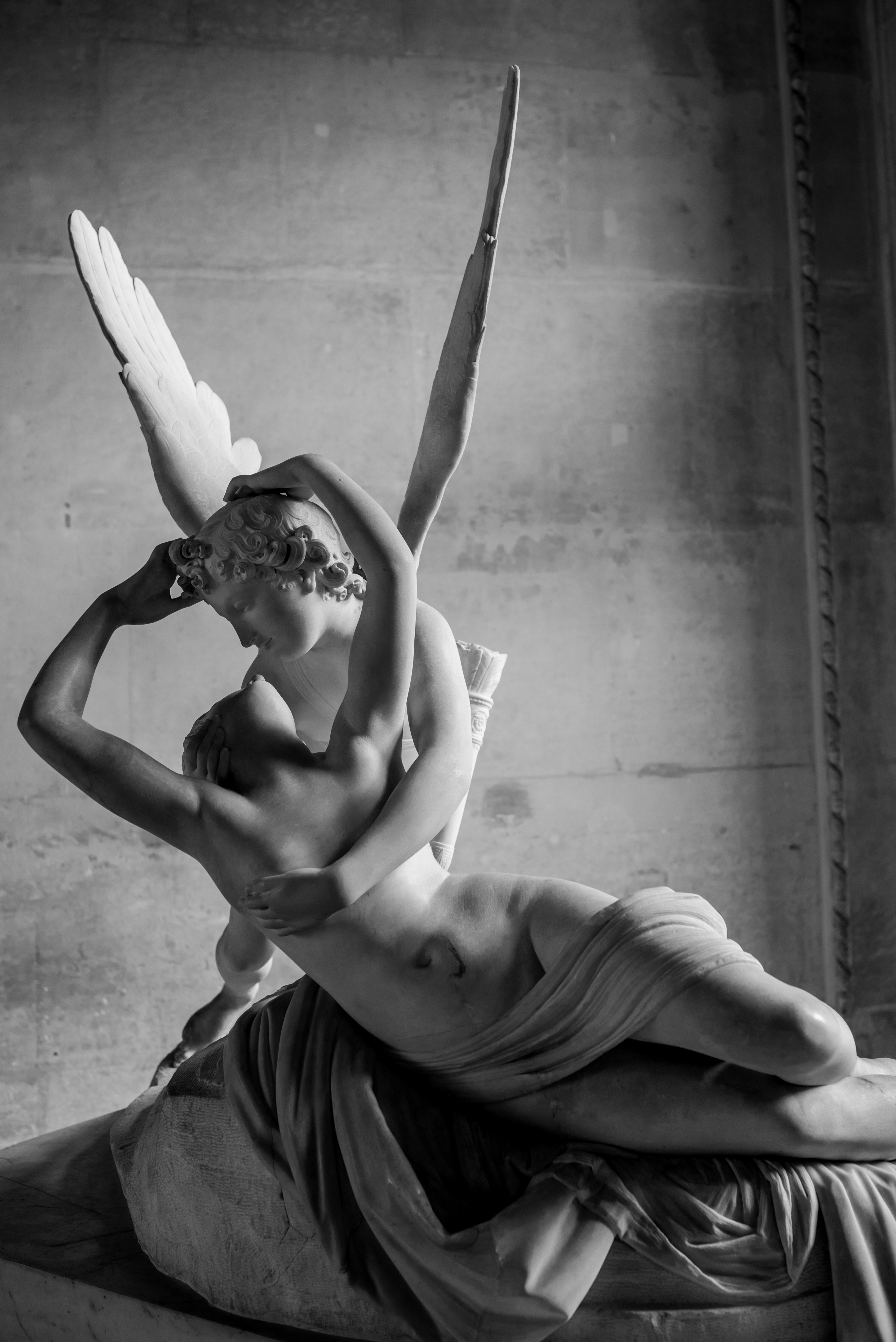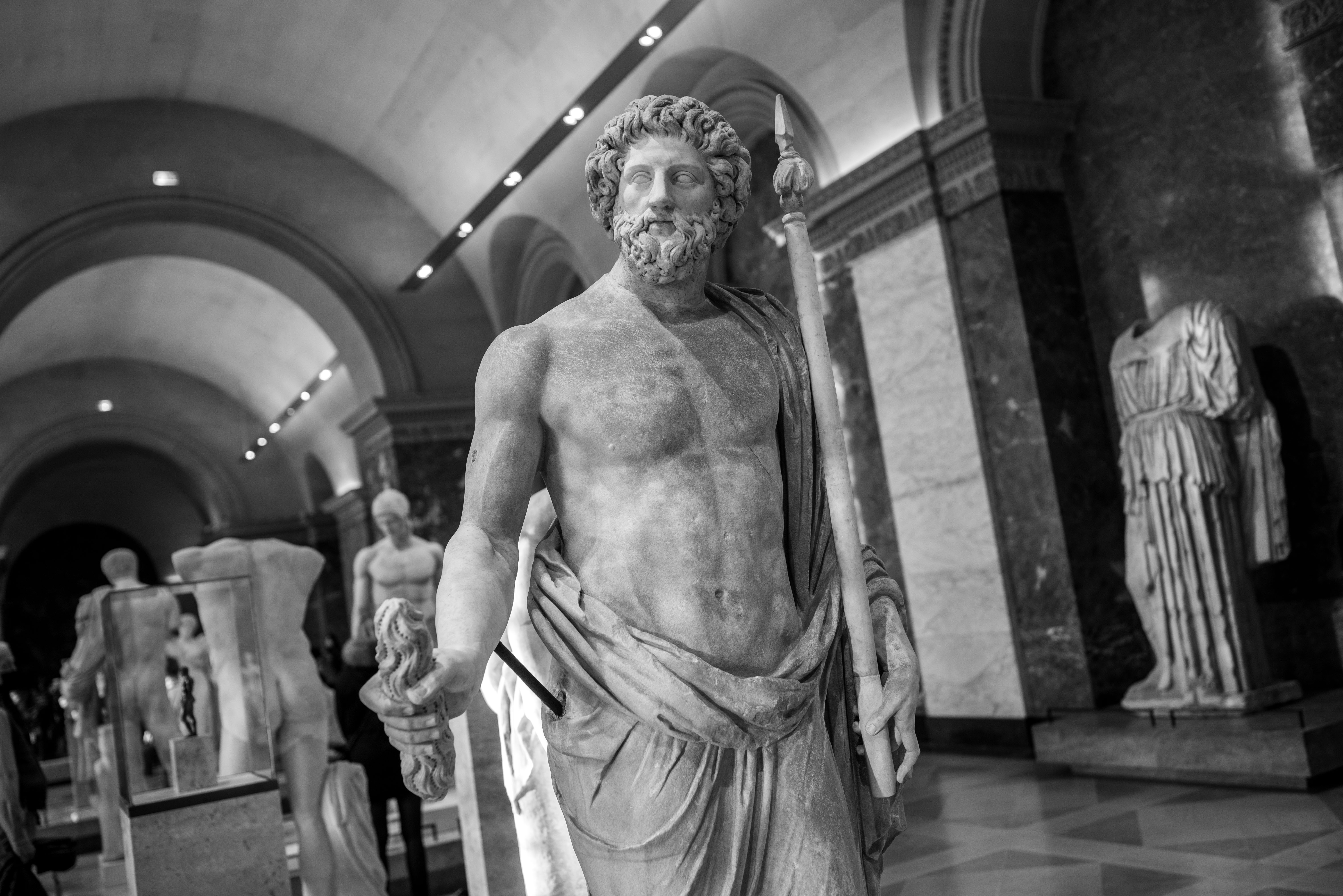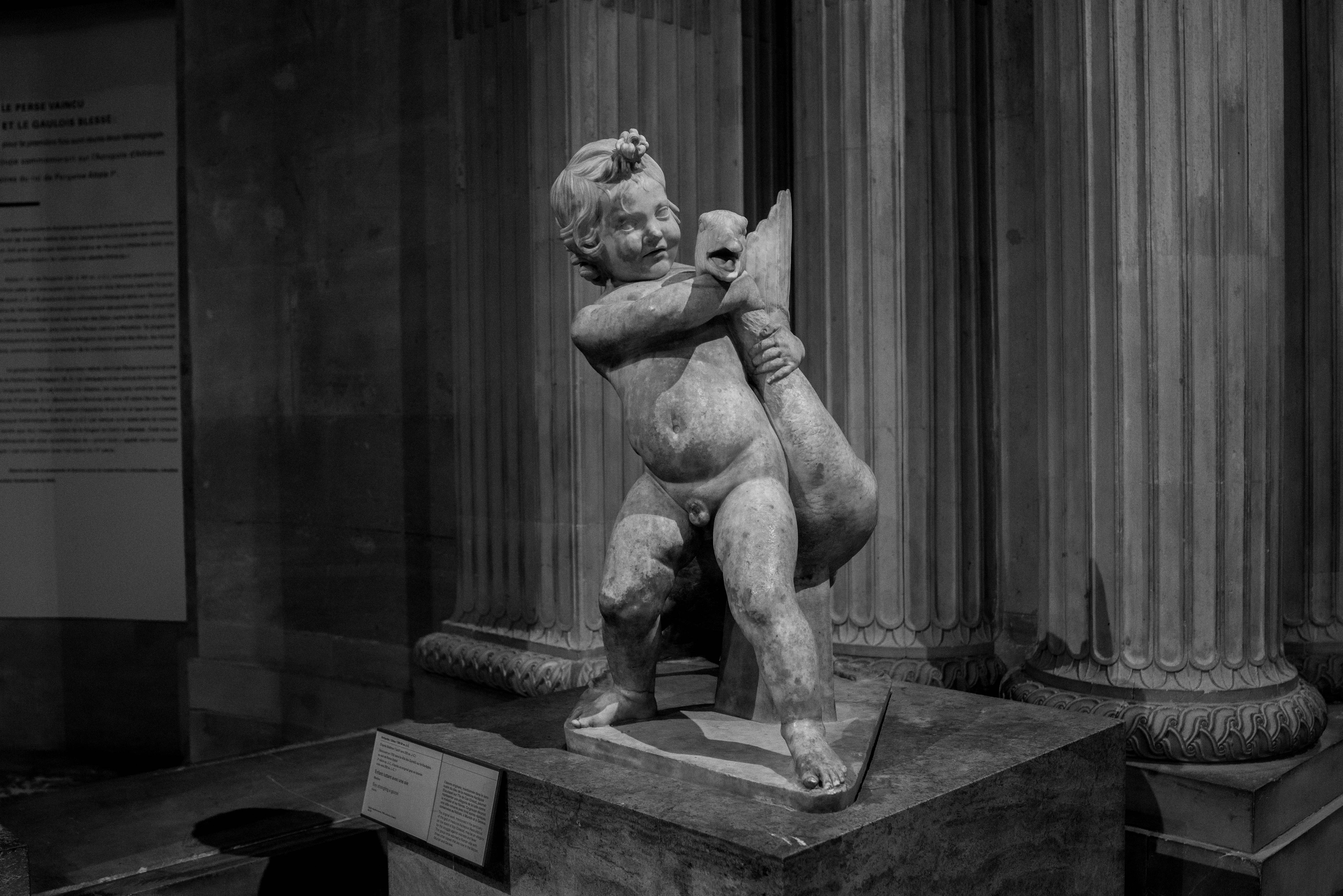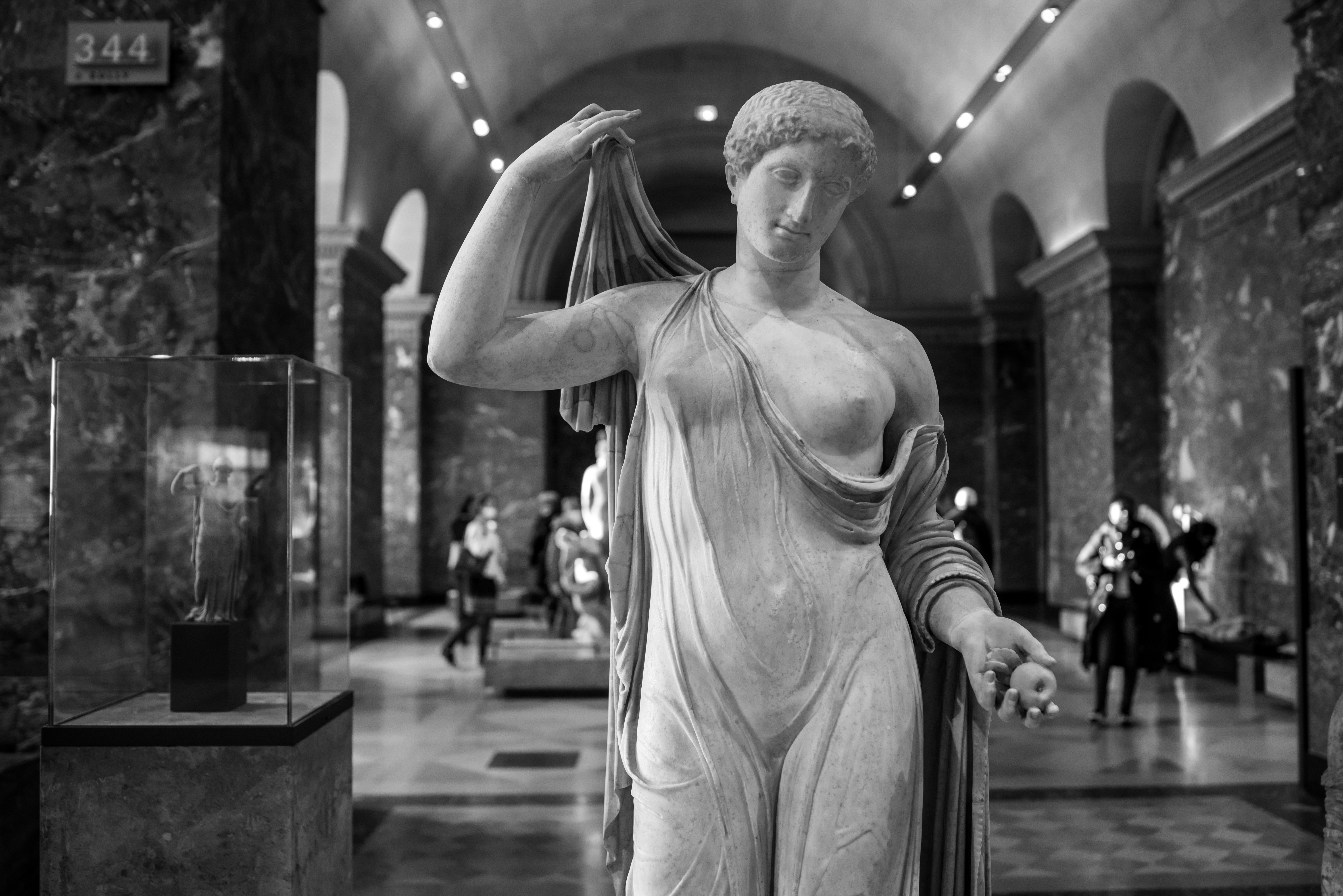 Je me rends souvent au musée du Louvre pour mon agence de communication Booster2Success, qui propose deux parcours escape game pour les entreprises dans le musée : l’un passe dans la majestueuse salle des Caryatides, l’autre dans celle des Vénus. Lors de certains repérages, j’aime photographier les statues : un excellent entraînement au portrait. Voici une série en noir et blanc tirée de ces deux salles.